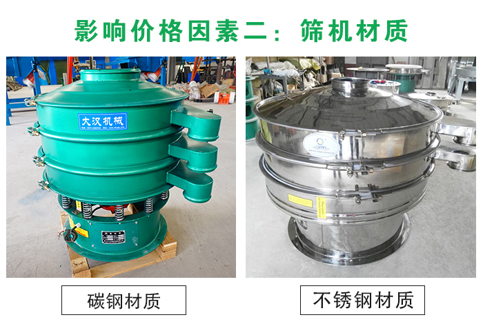煙草振動篩分機材質(zhì)分為碳鋼與不銹鋼兩種,不同的材質(zhì)價格上也相差幾百到上千元不等。對于煙草篩分衛(wèi)生環(huán)境要求較高的可以使用的不銹鋼材質(zhì),對于衛(wèi)生環(huán)境要求不高的可以選擇碳鋼材質(zhì)。