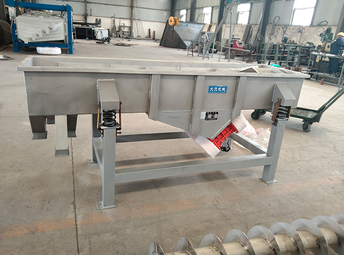 3、閉合電源開關,確認振動電機同步反向旋轉(zhuǎn),進行10-20分鐘空運轉(zhuǎn),設備在運行時如有異常聲音,應迅速關機進行檢查處理。設備運轉(zhuǎn)正常后,可將少量需篩分的物料通過進料口設入篩機內(nèi),確認物料向出料口方向行進,然后逐漸增加到所需和所能承受的給料量。