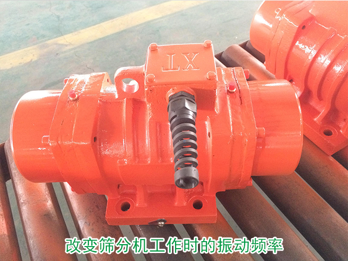 可改變篩分機工作時的振動頻率與其自身固有的振動頻率為不一致的頻率,可通過振動電機改變篩分機的振動頻率從而達到防止共振的目的。(可調(diào)節(jié)電機兩端的偏心塊夾角來改動激振力的大小,夾角小,激振力變大,振幅變大;反之,夾角變大,激振力變小,振幅變?。?/p>