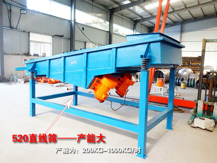【產(chǎn)能】520直線篩的產(chǎn)能為:200KG-1000KG/時(shí)(具體根據(jù)物料特性、網(wǎng)目大小、篩機(jī)層數(shù)了解詳細(xì)產(chǎn)能)