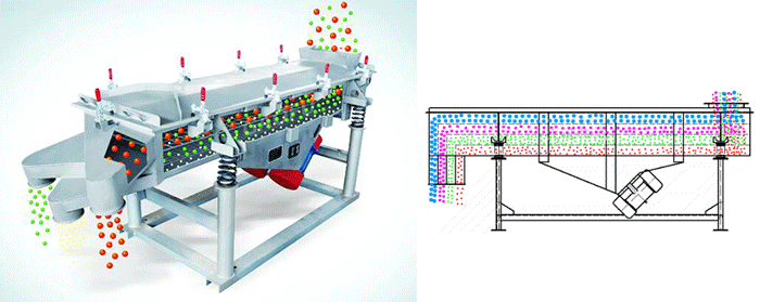 兩電機(jī)軸相對(duì)篩面在垂直方向有一傾角,在激振力和物料自重力的合力作用下,物料在篩面上被拋起跳躍或向前作直線運(yùn)動(dòng),從而達(dá)到對(duì)物料進(jìn)行篩選和分級(jí)的目的。適用于粒度在0.074—5mm,含水量小于7%,無粘性的各種干式粉狀或顆粒狀物料的篩分給料粒度不大于10mm。