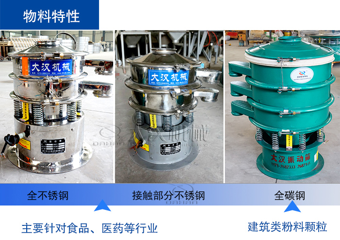 您可根據(jù)物料特性主要是決定您是適用哪種材質(zhì)的篩分機